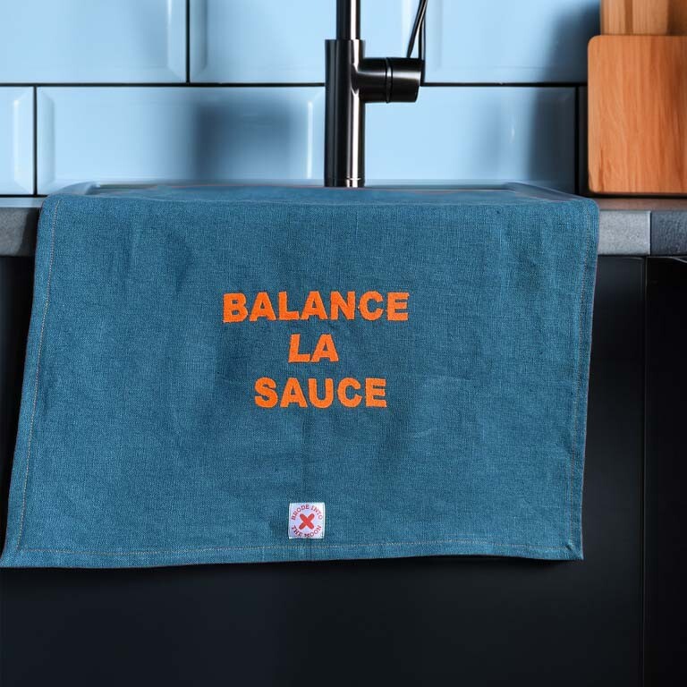 Découvrez la nouvelle collection de torchons en lin lavé, cousus main et brodés avec des punchlines pleines d’esprit.